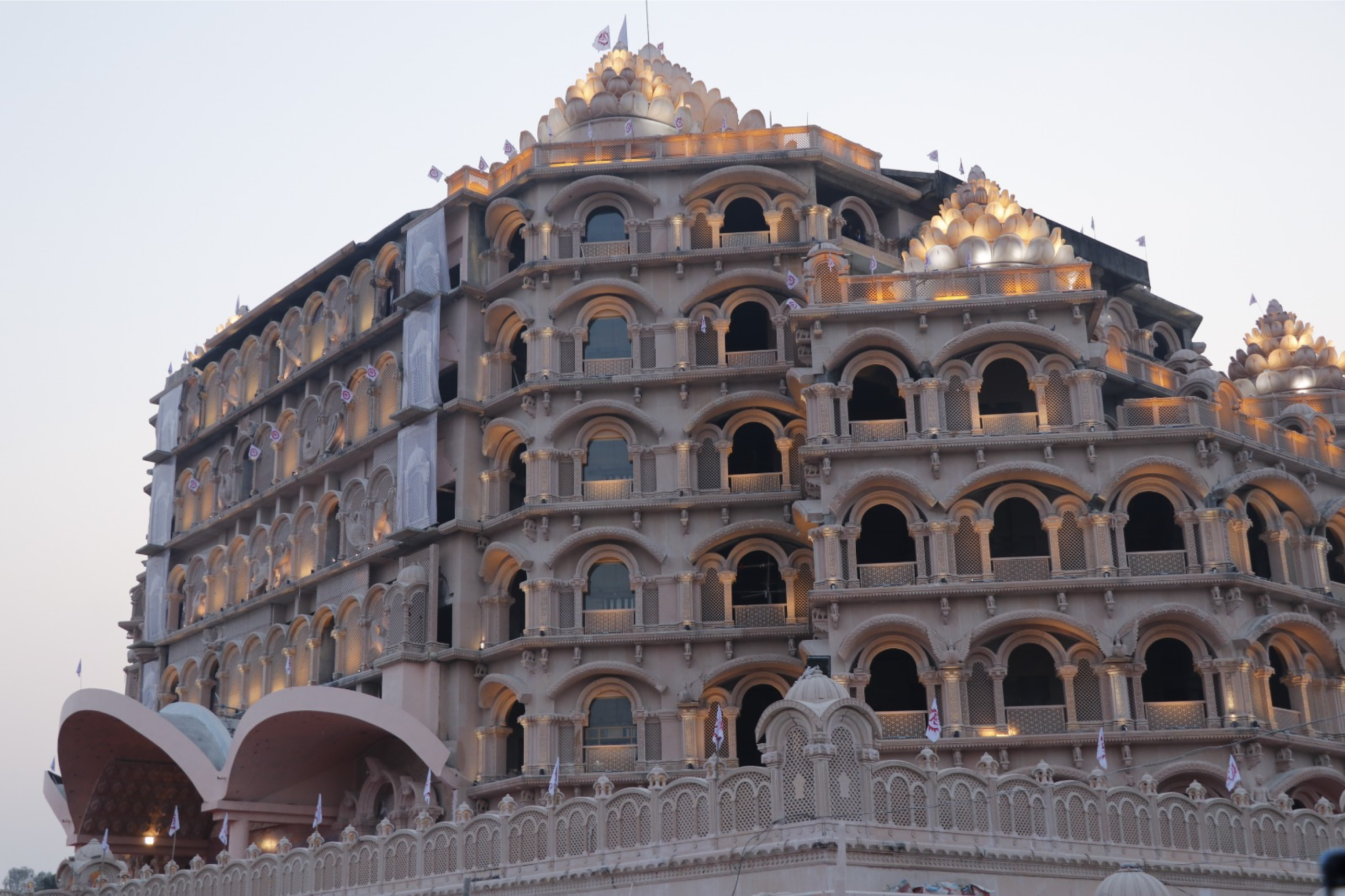 The Mandir spans more over 300,000 feet, and has capacity for 20,000 meditative practitioners at one time. Its seven floors celebrate the verses of various spiritual treatises, including the Swarved, composed by Sadguru Sadafal Deo Ji Maharaj, the Founding Father of Vihangam Yog Sansthan, and an all-accomplished Yogī.